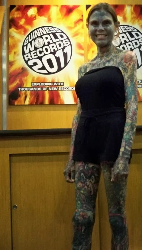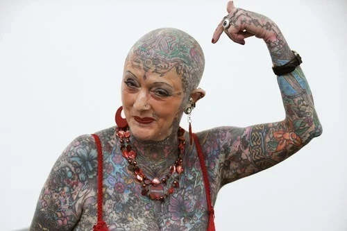 Isobel Varley din Yorkshire, Regatul Unit a deținut recordul mondial Gunnies pentru cel mai tatuat senior. În anul 2000, a fost numită cea mai tatuată femeie în vârstă din lume. În 10 ani, Varley a primit peste 200 de modele cu cerneală pe 76% din corpul ei. Contrar ceea ce poate părea, nu doar bărbații o duc la extreme și este nevoie de mult mai multă forță pentru a rezista durerii.